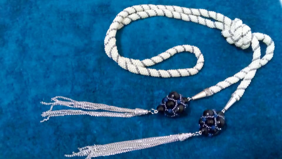 Лариат - это длинный жгут из бисера, оконеченый бусинами.